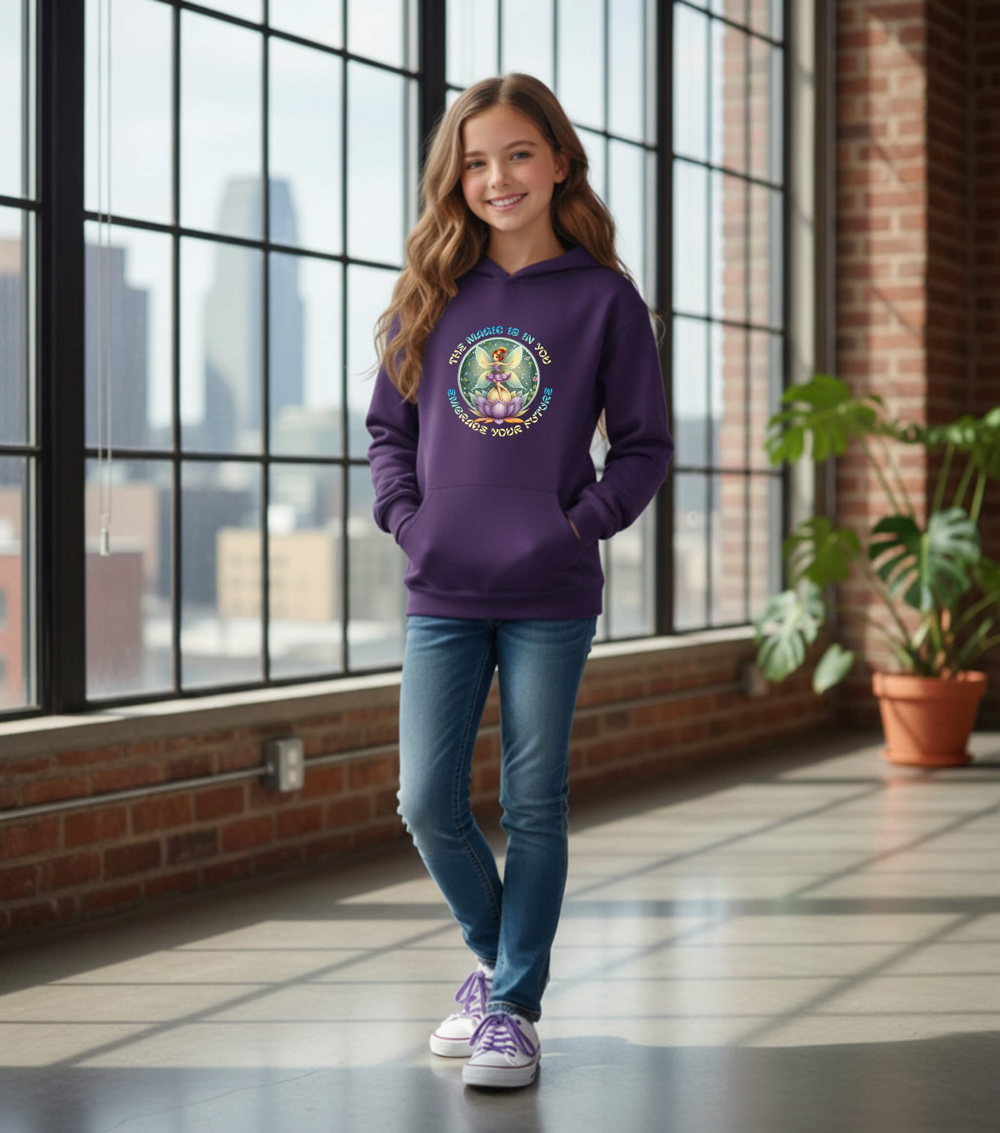 Meet Luna from The Magic Is In You collection - a mystical Bubble Fairy hoodie for the dreamer, the stargazer, the girl who believes anything is possible! Perfect for tweens who love a touch of magic in their everyday style.